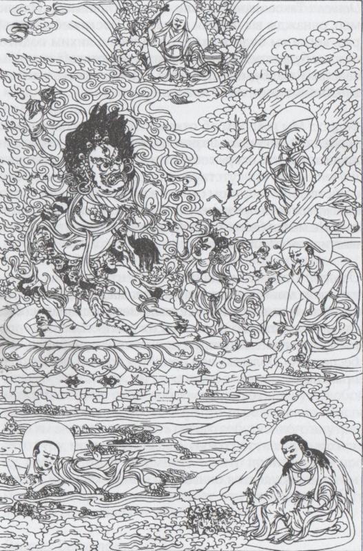 Дордже Дроло контролировал духовные энергии примитивных верований, создавая смятение. Он был наполовину индийцем, наполовину тибетцем. Он выглядел как индиец, но был одет как тибетский безумец. В руках он держал ваджру и кинжал, из его тела вылетали языки пламени, он ехал верхом на беременной тигрице. Это выглядело достаточно странно. Он был не совсем местным божеством и не совсем традиционным гуру. Он не был ни воином, ни царём. И уж точно он не был обычным человеком. Считается, что ездить верхом на тигрице опасно, но Падмасамбхаве каким-то образом удалось оседлать её. Чего он пытался добиться: притвориться тибетцем? Он почти ничему не учил. Невозможно смотреть на него как на бонского жреца или миссионера. Он никого не обращал — это не его стиль. Всюду, где он появлялся, он просто провоцировал хаос. Даже местные божества были в замешательстве — они были очень расстроены.
