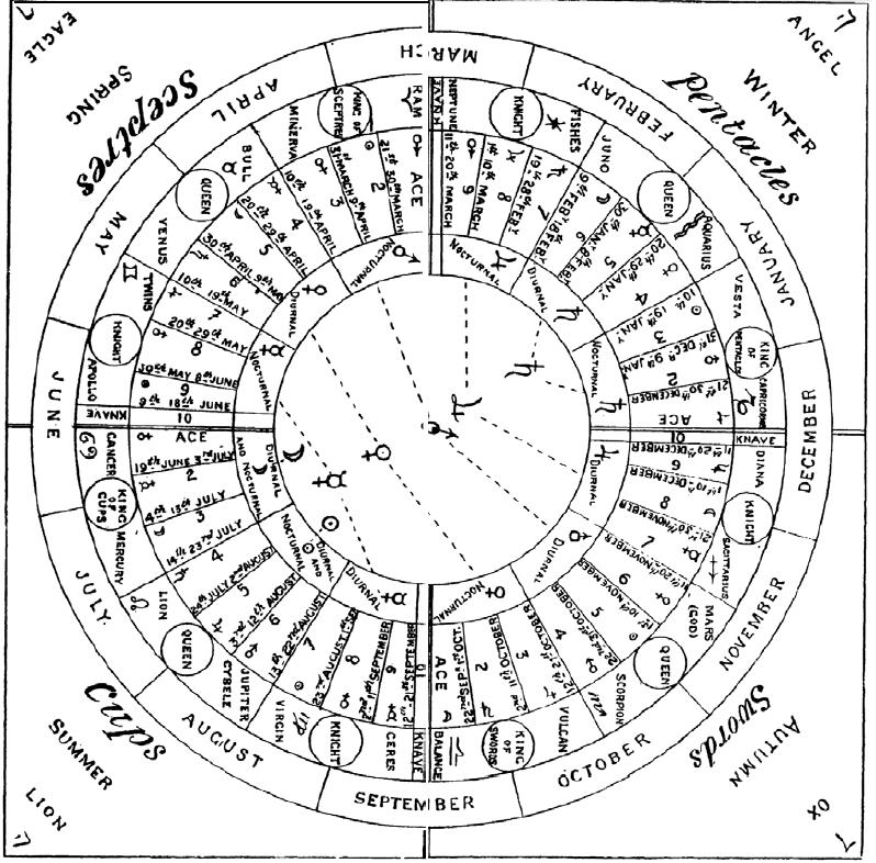 Тем не менее, доказано, что Старшие арканы Таро являются искаженным воспроизведением первоначальных образцов, датируемых ранними временами. Трудно восстановить эти образцы в их первоначальной чистоте; и если бы это возможно было сделать, то только через рассудительное изучение всех проявлений символизма на протяжении всей истории восточных мифологий. Это было нам завещано иероглифическими памятниками высшей важности в представленных изображениях знаков зодиака и созвездий небесных сфер. Но интереснее будет, если мы сможем доказать, что аллегорические изображения полностью воспроизводят 22 аркана Таро. Из этого родства мы можем получить великое открытие происхождения человеческого знания. К той же идентичности корней, которая явно связывает гравюры книги Тота с подразделениями греческой и египетской планисфер, приводит заключение, что в обоих случаях мы имеем специальную адаптацию, составленную из документов, которые мы еще не обнаружили, но которые могут дать нам полную информацию о древней Индии.