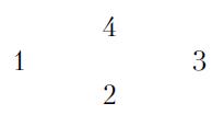 3. Снимите первые четыре карты сверху колоды, и, не глядя, разместите их в форме креста следующим способом, слева направо, как показано числами: