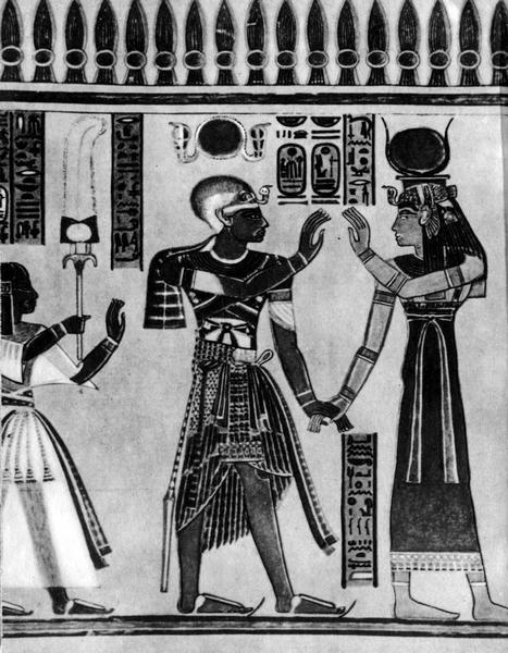 КАК САРА СТАЛА ЖЕНОЙ ФАРАОНА. Египтяне привыкли к подобного рода гостям. Скотоводческие племена, застигнутые засухой, нередко искали у них пристанища. Им обычно предоставляли просторные, малоосвоенные пастбища в устье Нила. Совершавшие набеги разбойничьи племена натыкались на границе на крепостной вал, именуемый Княжеской стеной, на сторожевые башни и бдительную охрану; но мирным скотоводам египтяне обычно не отказывали в гостеприимстве. Конечно, чиновники фараона требовали за это определенной мзды; кроме того, иногда они забирали у кочевников красивых девушек и посылали их в гаремы вельмож или даже самого фараона. Аврам знал об этом. Приближаясь к египетской границе, он подозвал свою жену Сару и сказал: «Я знаю, что ты женщина прекрасная собою; когда египтяне увидят тебя, то скажут: это жена его, и убьют меня, а тебя оставят в живых. Поэтому скажи, что ты мне сестра, чтобы мне было хорошо благодаря тебе и чтобы я из-за тебя не лишился жизни». Сара была покорной женой. Чтобы спасти мужа, она пошла на хитрость и выдала себя за его сестру. Кстати, это было не совсем ложью, так как она была сводной сестрой Аврама. Вельможи рассказали фараону о красоте Сары, и он взял ее в свой гарем. Она так полюбилась ему, что он засыпал ее мнимого брата щедрыми дарами. У Аврама вскоре появился «мелкий и крупный скот, и ослы, и рабы, и рабыни, и лошаки, и верблюды».
