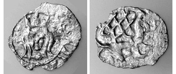 Монета Владимира Ольгердовича Киевского с ордынской плетёнкой