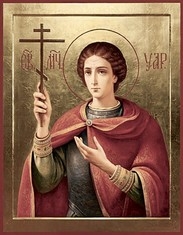 Веселя?ся, по?двиги твоя? соверши?л еси?, во?ине до?блий Вседержи?теля, и я?ко победи?тель от Него? венча?лся еси?, Уа?ре всеблаже?нне, му?чеников вели?кая сла?во.