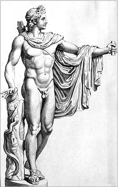 Обратите внимание на змею, которая ползет вверх по колонне, на знаменитой статуе Аполлона Бельведерского (рис. 75).