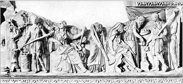 Рис. 117. Очищение Геракла (каменный барельеф, Италия времен античного Рима, I в. до н. э.)