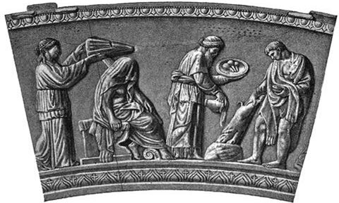 Рис. 116. Очищение Геракла (каменный барельеф, Италия времен античного Рима, II в. до н. э.)