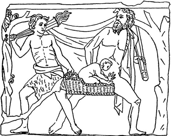 На рис. 119 вы видите изображения откровения, переживаемого во время мистерий. Этот новорожденный ребенок воплощает мотив смерти и воскрешения Спасителя, а откровение в корзинке теперь представлено младенцем, возродившимся юным Дионисом. Две его ипостаси – маленький мальчик и старик – оба держат факелы, воплощая разные аспекты силы Аида и его энергии бездны. И есть еще одно откровение, когда распахнется занавес. Мальчик слева держит в руке факел, и можно догадаться, что там, где проводили ритуал, было темно. Должно быть, это было незабываемо.