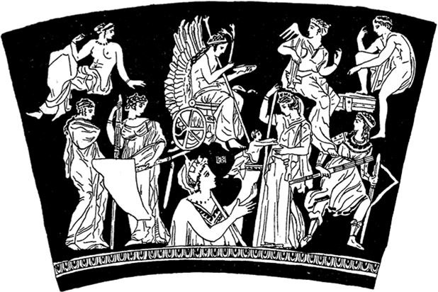 Рис. 120. Рождение божественного ребенка в Элевсине (краснофигурная ваза, античная Греция, V в. до н. э.)
