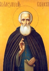 О, священная главо, ангеле земный и человече небесный, преподобне и богоносне отче наш Александре, изрядный угодниче Пресвятыя и Единосущныя Троицы, многия милости живущим во святей обители твоей и всем, с верою и любовию притекающим к тебе, являяй. Испроси нам вся к житию сему временному благопотребная, паче же к вечному спасению нашему нужная. Пособствуй предстательством твоим, угодниче Божий, правителем страны нашея России. И да в мире глубоце пребудет святая православная Церковь Христова. Буди всем нам, чудотворче святый, во всякой скорби и обстоянии скорый помощниче. Наипаче же в час кончины нашея явися нам, заступниче благосердый, да не предани будем на мытарствах воздушных власти злобнаго миродержца, но да сподобимся непреткновеннаго восхода в Царствие Небесное. Ей, отче, молитвенниче наш присный! Не посрами упования нашего, не презри смиренных молений наших, но присно о нас пред Престолом Живоначальныя Троицы предстательствуй, да сподобимся вкупе с тобою и со всеми святыми, аще и недостойны есмы, в селениих райских славити величие, благодать и милость Единаго в Троице Бога, Отца и Сына и Святаго Духа во веки веков. Аминь.
