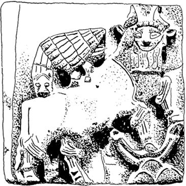 Рис. 44. Лунный бык и Птица-лев (терракота, шумерская культура, Ирак, 2500 лет до н. э.)
