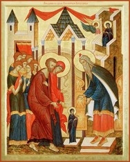 Возмогаю,— рече Анна ему,— знающи, яже глаголеши, разумееши бо сия Духом Божиим, ясно яже Девы проповедал еси; приими убо Пречистую в храм Создателя твоего и, радуяся, пой Ему: благословите, вся дела Господня, Господа.