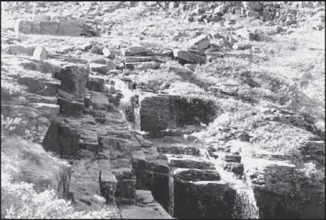 При внимательном знакомстве с местностью сразу стало ясно, как образовалась дорога из огромных плит. Дело в том, что горный массив тут сложен из графитового сланца. В незапамятные времена в скалах выветрилась порода, в трещины попадала вода, постепенно выламывались плоские геометрические блоки, которые сползали со склона. Блоки эти, наползая один на другой, соскальзывали вниз, вплоть до дна озера, и образовали “дорогу”. Если внимательно посмотреть на скальный склон, там видны следы “съезда” этих блоков».