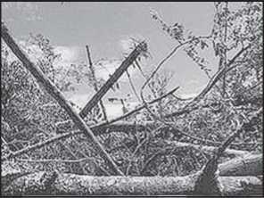 В 50 м от сосняка, в низине, исследователи обнаружили еще три повала лиственных деревьев. Стволы берез и лип, заросли кустарника были причудливо закручены и пригнуты к центру окружности – как и в сосняке, деревья валило по кругу.