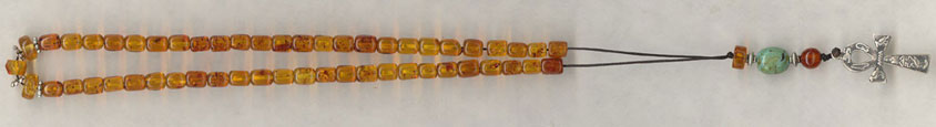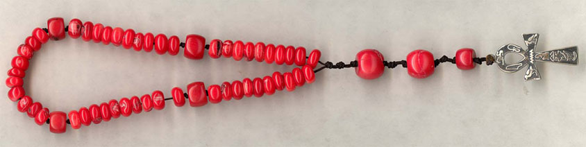 Четки (вы их видите на снимках) включают в себя 50 костяшек (это число священно у поклонников Сириуса, так как представляет собой период обращения звездной системы). На конце четок висит крест, но не православный или католический, а классический египетский анх, на котором сделана надпись иероглифами. Попытки ее расшифровать ни к чему не привели – а впрочем, мы не знаем, НА КАКОМ ЯЗЫКЕ эта надпись, да и иероглифы могут читаться по-разному…