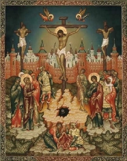 Да воскреснет Бог, и расточатся врази Его, и да бежат от лица Его ненавидящии Его. Яко исчезает дым, да исчезнут; яко тает воск от лица огня, тако да погибнут беси от лица любящих Бога и знаменующихся крестным знамением, и в веселии глаголющих: радуйся, Пречестный и Животворящий Кресте Господень, прогоняяй бесы силою на тебе пропятаго Господа нашего Иисуса Христа, во ад сшедшаго и поправшаго силу диаволю, и даровавшаго нам тебе Крест Свой Честный на прогнание всякаго супостата. О, Пречестный и Животворящий Кресте Господень! Помогай ми со Святою Госпожею Девою Богородицею и со всеми святыми во веки. Аминь.