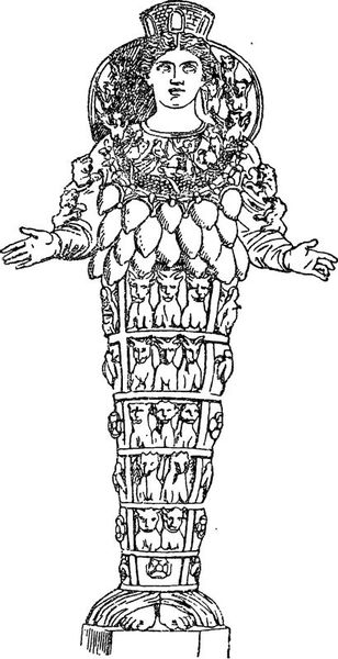 Астарта-Артемида г. Эфеса, — богиня всяческого плодородия, на что намекают ее символы, носившая именование «многогрудной». Храм ее считался одним из семи чудес света.