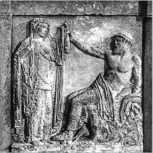 Рис. 85. Свадьба Геры и Зевса (мраморный барельеф, античная Сицилия, 450–425 гг. до н. э.)