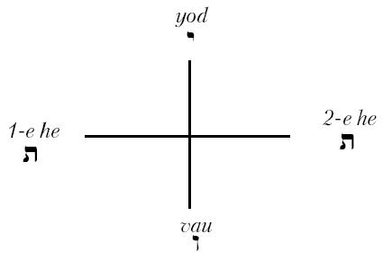 Слово состоит из четырех букв: Yod (?), He (?), Vau (?), He (?). Таким образом буква Не повторяется дважды.