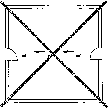 Главный и запасной вход не должны лежать на одной прямой линии, иначе то, что входит, будет иметь тенденцию также легко уходить. Кроме того, не располагайте дома двери точно по сторонам света, как это обычно делается в храмах.