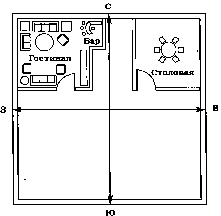 Гостиную и столовую рекомендуется располагать вдоль восточной или северной стены. Столовую следует устраивать поближе к северо-востоку и предпочтительно рядом с кухней. Возьмите на заметку, что печи и плиты надо ставить на юго-востоке. Растения хороши везде.
