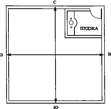 Истинная преданность коренится в сердце. Однако, если вам хочется устроить специальную комнату для пуджи, лучше всего это сделать на северо-востоке. Божества могут быть обращены лицом к востоку, западу или северу. Если окажется, что они смотрят на юг, рекомендуется поставить статую Шивы или Ханумана.