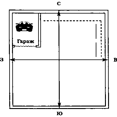 Стройте гараж предпочтительно на северо-западе, или где-нибудь вдоль пунктирной линии. Ставьте машину лицом к северу или западу.