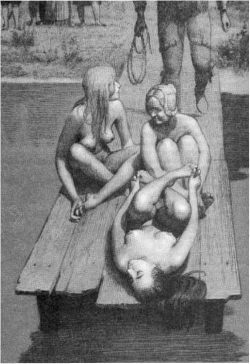 Повсюду народ пристрастился к жестокому зрелищу. Голые связанные женщины барахтались в воде, разрываясь между инстинктивным страхом захлебнуться и опасением оказаться колдуньями в глазах сограждан.
