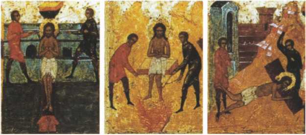 Различные муки, которыми у доброго страдальца Христова хотели вынудить отречение от Христа, были бессильны, и сам мучитель был в недоумении, почему он при всем своем могуществе не мог преклонить к своему злочестию одного раба Христова, твердого в своем исповедании подобно крепкому и непоколебимому столпу.