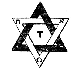 От взаимопересечений этих двух подобных треугольников получается фигура шестиконечной звезды — «звезды бога вашего Ремфана и скинии Молоховой» (Амос. V, 26), что, по масоно-еврейской концепции, символизирует собою конечный результат борьбы «бога чуждего» — диавола с Богом Истинным, как победы духа тьмы и поставления им своего имени (звезды) на месте Имени Божия (треугольника). В звезде этой находятся обе буквы — и Альфа и Омега — что и должно символизировать собою, что он, то есть диавол, как победитель, и есть.