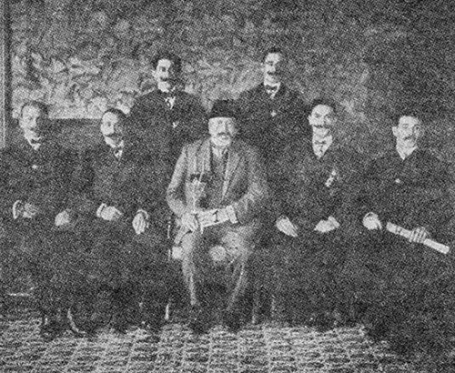 Рис. 21-й. Депутация солдат — георгиевских кавалеров, во главе с бароном Д. Г. Гинцбургом, поднесшая Государю Императору св. Тору 4 августа 1910 года. (Фотографический снимок «Одесских Новостей» 20 июля 1911 года, № 8472)