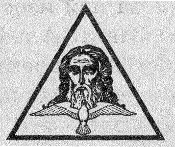 2) В виде равностороннего треугольника вершиною вверх и в нем вписанного Всевидящего Ока.