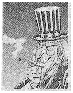 «Сам» — сокращение имя Самиэль, одно из имен Люцифера. Козлиная бородка придана этому типу для вящего сходства с прототипом в образе Бафомета. Происхождение этой люциферианской символики находит себе объяснение в составе первоначальных северо-американских колонистов, родоначальников их государственности. Как известно, все они, за немногими исключениями, были представителями крайних реформистских христианских сект — квакеров, методистов, кальвинистов, цвинглистов и других, — отрекшихся от единства со Вселенской Церковью и от ее Таинств и только лишь прикрывавшихся христианским именем, по подобию русских хлыстов, евангелистов, баптистов и др. Истинная сущность их религий, таким образом, обнаруживается принятием ими символа для созданного ими государства — пятиконечной звезды Бафомета. Как в магометанстве, так и в реформаторских, якобы христианских церквах, большинство к ним принадлежащих и не подозревают, конечно, какой «единый бог» возглавляет и вдохновляет их веру.