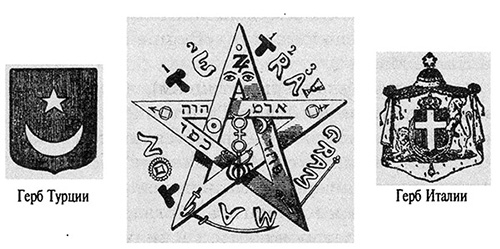 Но есть еще и иная печать еврейской каббалы и чернокнижничества масонства и всех его многочисленных разветвлений, которая, как символ Сатаны, как первообразная печать его, открылась воочию всего міра сравнительно недавно. У каббалистов всех толков и наименований она зовется «пентаграммой» и имеет форму пятиконечной звезды.