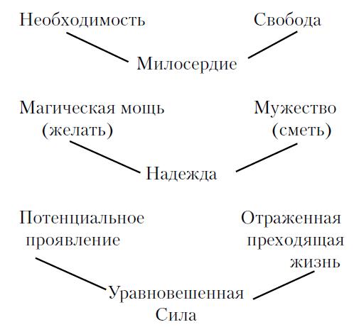 Атрибутами человеческой триады являются: Адам, Необходимость, образ и отражение Воли и Силы; Ева, Свобода, образ и отражение Способности к пониманию и Власти; и Адам-Ева, милосердие, образ и отра-