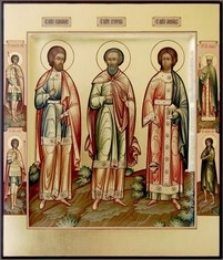 Крестом вооружившеся Христовым, в нем мучителей всю крепость мужески низложисте, яко веры поборницы; безбожие все идольское обличисте и Троицу, святии, усердно проповедавше. Тем достойно от Нея венцы победы приясте, яко законно пострадавшие, страстотерпцы всеславнии, молите Христа Бога грехов оставление подати празднующим любовию святую память вашу.