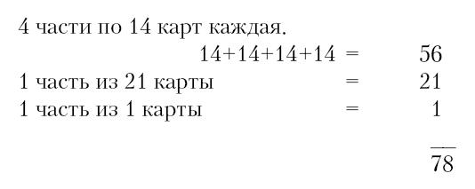 56 карт Младших Арканов образуются из четырех групп по 14 карт каждая.