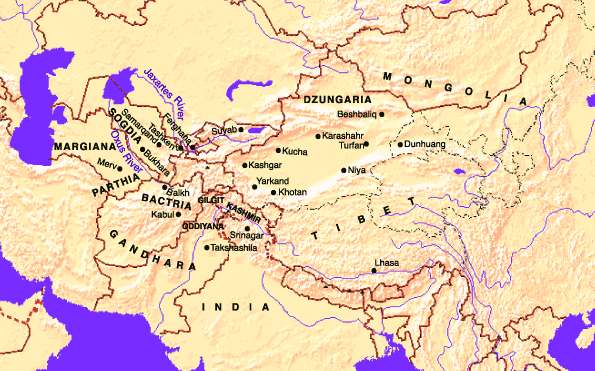 В терминах географических областей наших дней, ранними буддийскими регионами в Центральной Азии в разное время были: