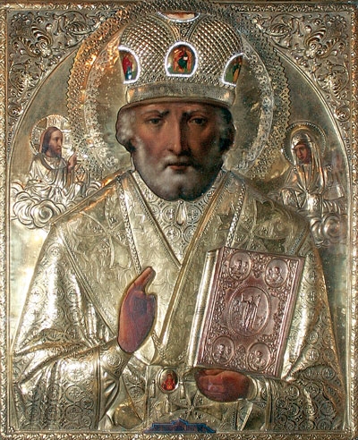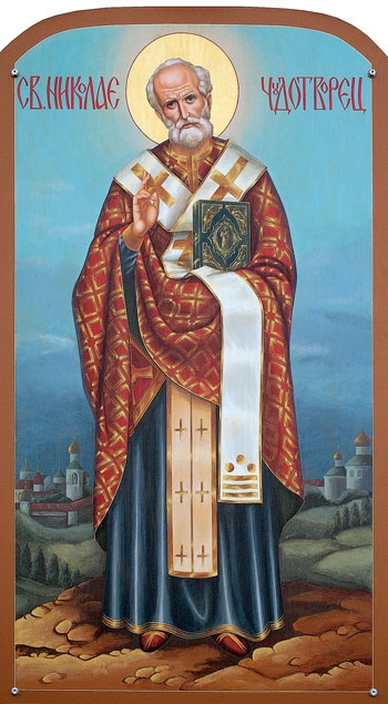Образ свт. Николая Чудотворца на восточном фасаде храма