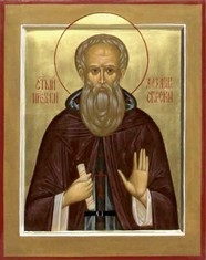 Стопам последуя, преподобне и Богоносе, Владыки Христа, благочестно пожив на земли, кроток, незлобив явился еси, милостив и смирен, Александре, и любве исполнен Божественныя, сего ради тя верно восхваляем.