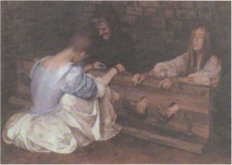 Жанна д'Арк, другая знаменитая узница, тоже имела возможность сохранить жизнь отречением от своих взглядов. Мы помним, что эта отважная девушка выбрала пламя костра. Её вела любовь к «милой Франции». Находясь в руках своих врагов. Жанна приняла немало мук. После неудачной попытки побега её заперли в особую железную клетку, где она могла только стоять, прикованная за шею, руки и ноги. Позже, когда условия слегка смягчили. Жанна жаловалась церковным судьям на тяжесть цепей, которые не снимали с её ног даже во время болезни.