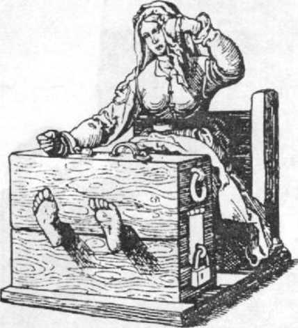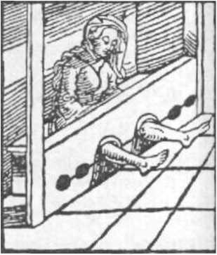 В других темницах узниц запихивали в медные короба и подвешивали на крючья к стене — чтобы они не могли коснуться пола. Считалось, что с этого момента Сатана утрачивает власть над схваченными ведьмами (Soldan-Heppe, 1973 стр. 332).