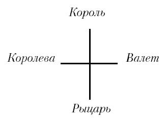 Рыцарь выражает нейтральность или юность. Наконец, паж представляет четвертый элемент последовательности, которую можно нарисовать следующим образом:
