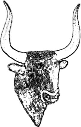 Рис. 25. Ритон в виде бычьей головы с лунными рогами (резьба по камню, талькохлорит («мыльный камень») с перламутром и золотом, минойский период, Греция, 1500 лет до н. э.)