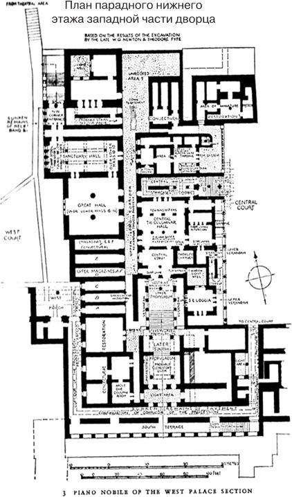 «Кносский дворец является образцом единого стиля. Подобно тому как греческий храм отражает чувства людей в данный конкретный момент, этот дворец (а также готический храм или храмы Карнака и Люксора) отражает историю и развитие своих строителей. Более древние структуры адаптированы и подогнаны к новому плану; старые фундаменты, когда-то застроенные новыми конструкциями, лежат в запутанном лабиринте, там, где они попали под лопату археолога». – Дж. Д. С. Пендлбери.[54]