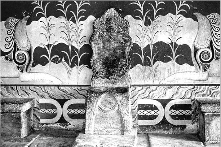 Рис. 27. Тронный зал, Кносский дворец (фреска, минойская культура, Крит, 1500 лет до н. э.)
