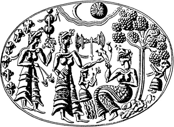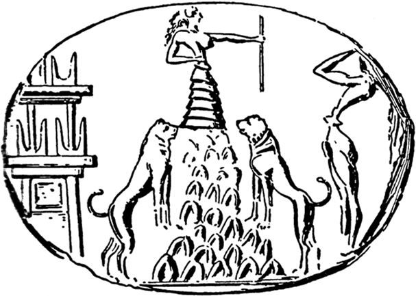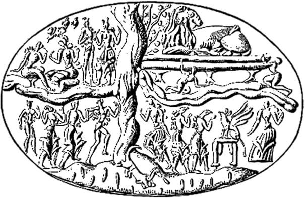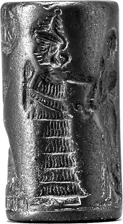 Рис. 32. Богиня в семиярусной юбке (печать на гематите, шумерский период, Ирак, 2150–2000 гг. до н. э.)