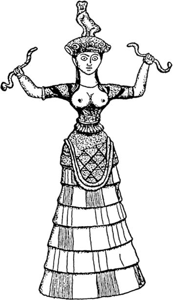 Рис. 30. Богиня со змеями (фаянс, минойская культура, Крит, 1600 лет до н. э.)