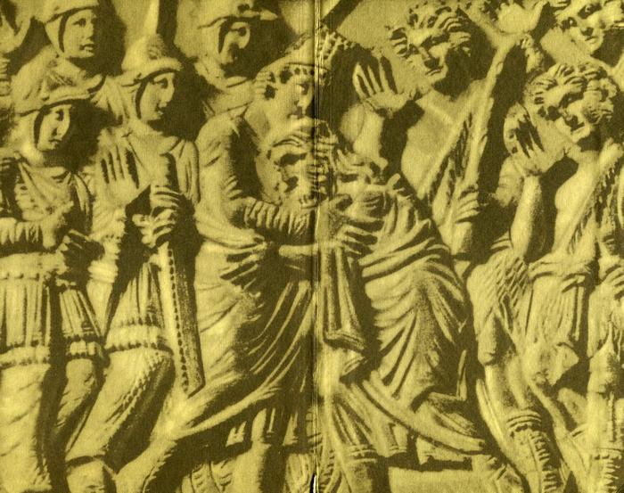 Иосиф раздает хлеб в Египте. Барельеф из слоновой кости середины VI в.