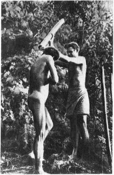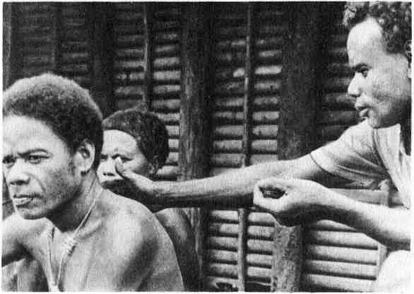 Лекарь «вынимает» причину болезни из спины больного. Соломоновы острова.