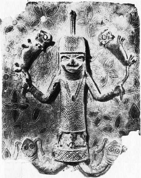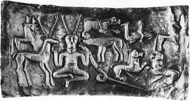 Архаическое кельтское божество Кернуннос (бог с оленьими рогами). Связан с охотничьим культом.