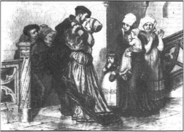 Семья богатого горожанина. Немецкая иллюстрация XIX в.